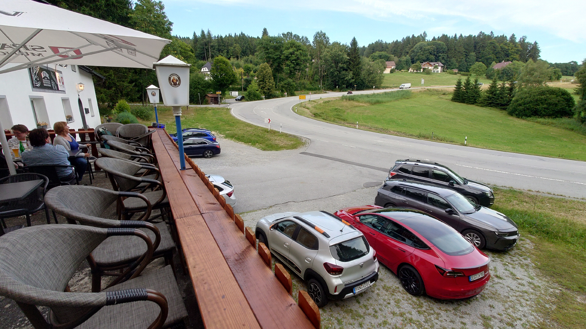 so schon es auch aussihet - für die Tereassennutzung war das Wetter selbst an diesem Julitag leider zu kalt - wir mussten unseren Stammtisch in das Lokal verlegen.