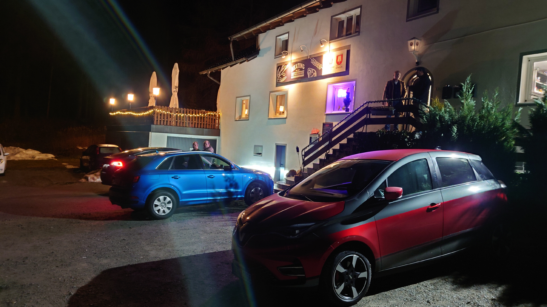 Außer ein paar Schneeresten vom Schneefall vor ein paar Tagen sieht es hier gar nichts weihnachts-winterlich aus - wenn die Lichterketten-Dekoration nich daraf hinweisen würden